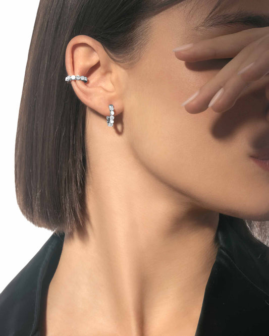 Mini Créoles D-Vibes or blanc 18Kt et diamants