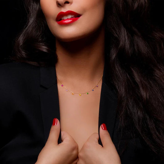 Collier Confetti Rainbow or jaune rubis, tsavorite, améthyste, saphirs rose, orange, jaune et bleu