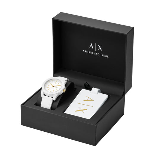 Coffret cadeau montre Armani Exchange et étiquette valise