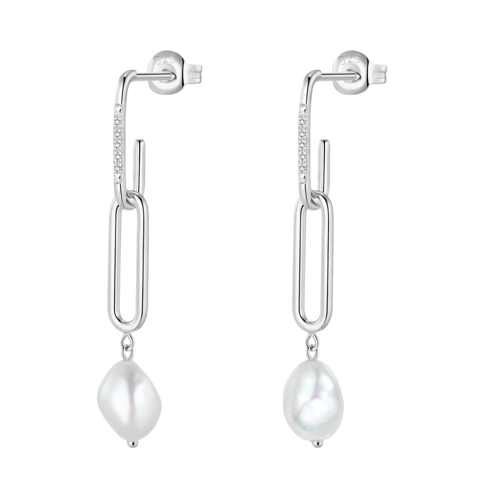 Boucles d'oreilles Elaine argent, diamants et perles d'eau douce baroque