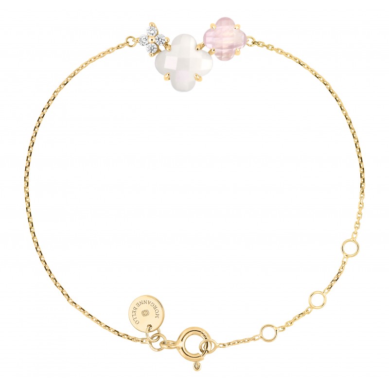 Bracelet Bouquet quartz rose, nacre blanche or jaune et diamants