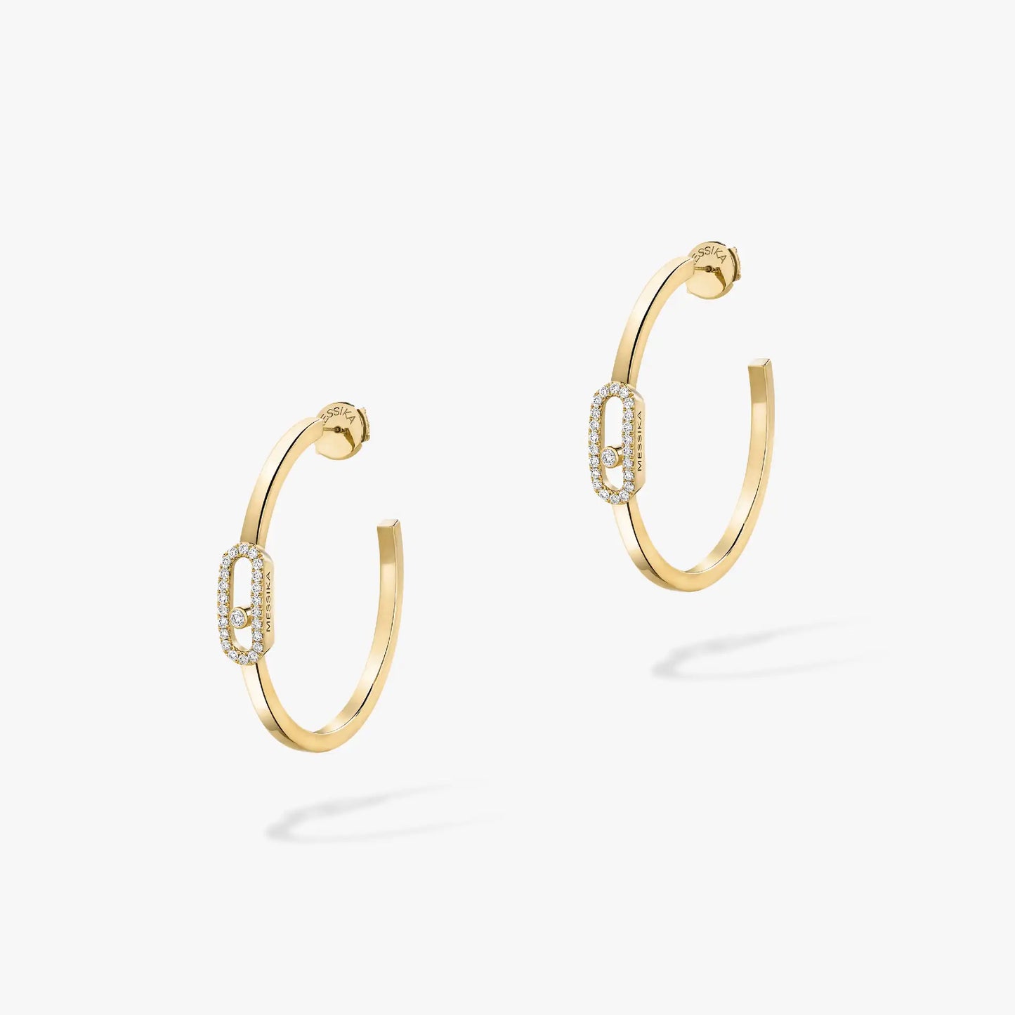 Valérie Messika réinvente la créole classique pour lui donner ce twist ultra-moderne, si propre à la Maison. Avec son motif Move Uno serti de diamants, ces créoles aux angles nets et aux dimensions parfaites habilleront toutes vos tenues, de jour comme de nuit. Un must-have !