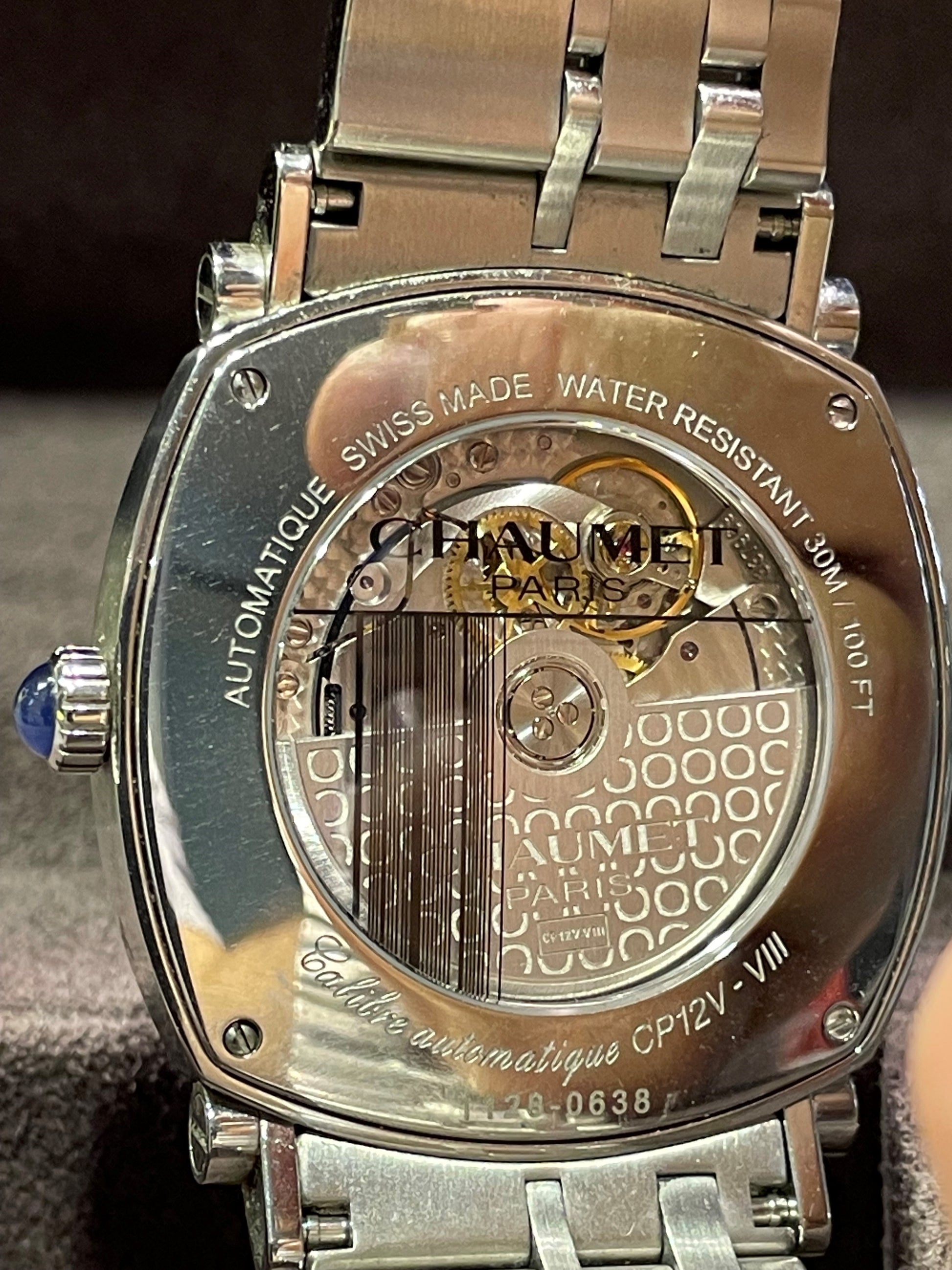 Montre d'occasion, état impeccable, mouvement automatique, boitier et bracelet acier, verre saphir inrayable, cadran noir.