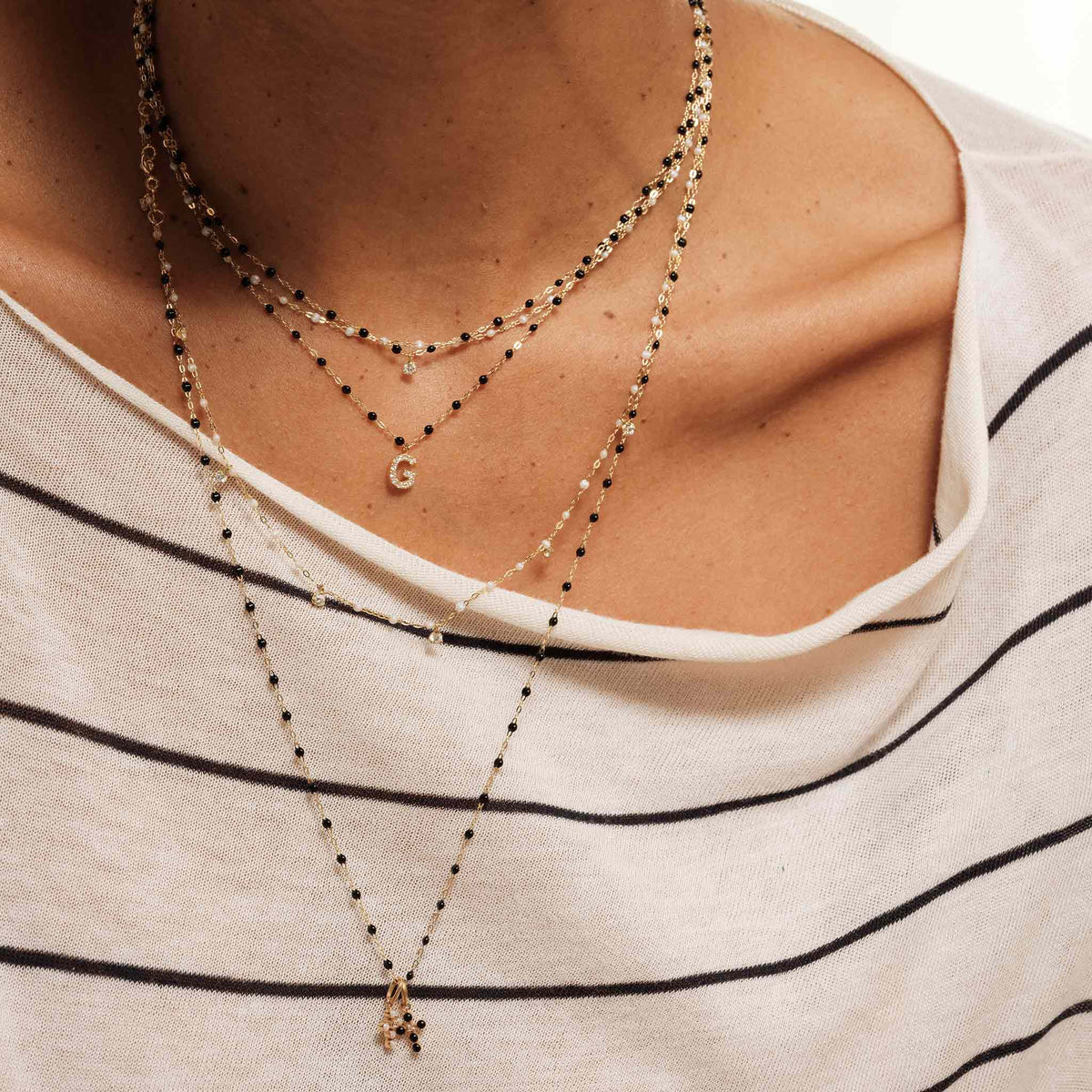 Sautoir Gigi Classique noir or jaune 60cm